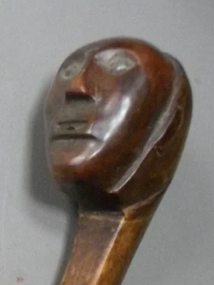Close up of carved wood "Tree Dweller"